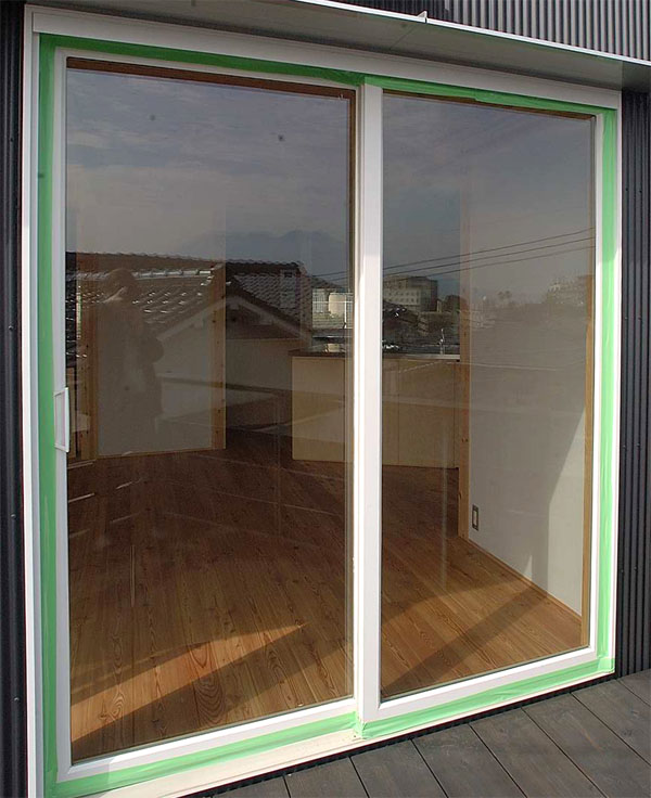 近隣に古い民家があり 瓦などの飛来物の心配がある窓面は、ネットを張る等の対策をおすすめします。