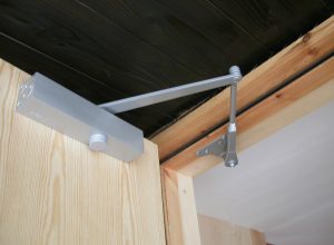 ドアクローザーは油圧を利用してドアをゆっくりと閉めることができるようにする装置で、ドアの上部に取り付いてます。(写真1)主に玄関ドアに使われ、ドアが大きな音をたてて閉まったり、衝撃が起きるのを防いでくれます。