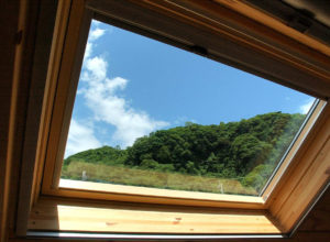 トップライトは、天窓とも呼ばれ、光や風をとりこむために屋根に設置する窓のことです。安定した自然光を室内に取り込むことができ、開閉するタイプなら通風も確保できます。そして何より家の中から空が見える窓は生活に彩りを与えてくれます。(写真1)